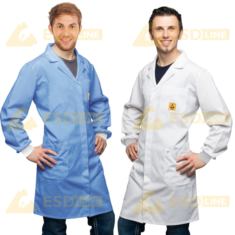 • Staticky disipatívna tkanina zo zmesi 65 % polyesteru, 32 % bavlny a 3 % uhlíkom potiahnutej priadze
